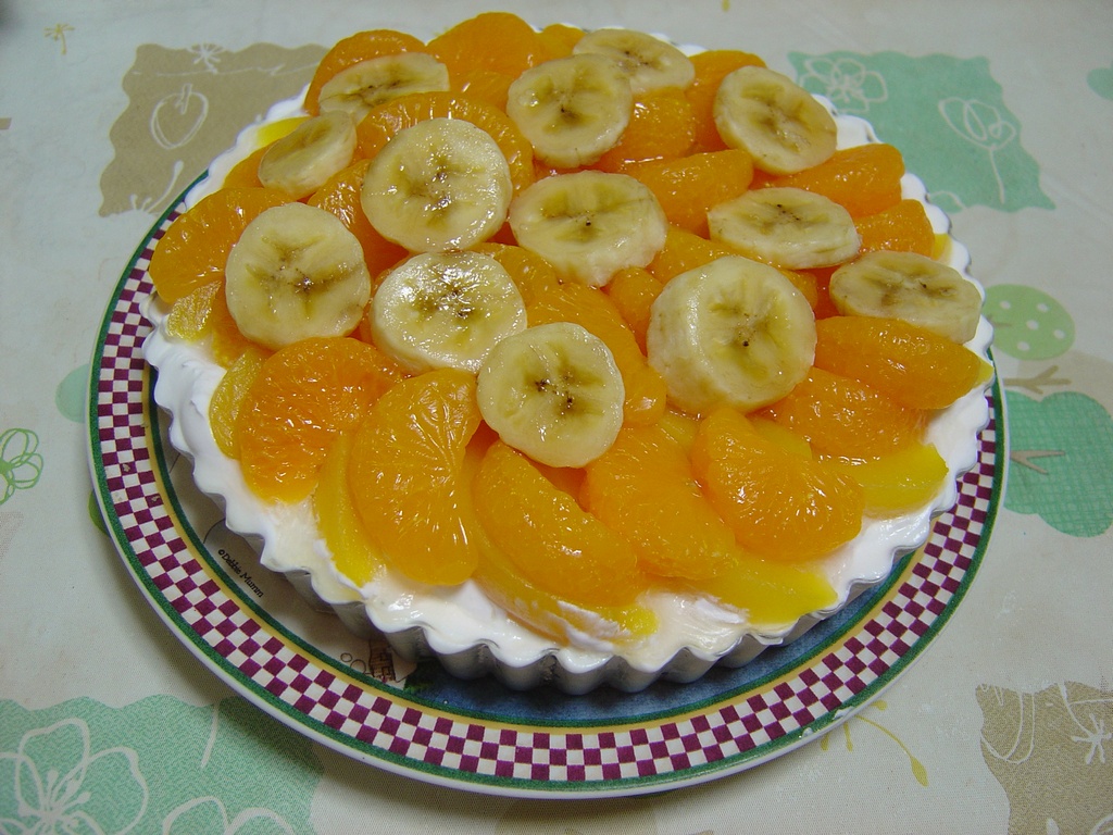 フルーツは缶詰の黄桃とみかん、それとバナナです。